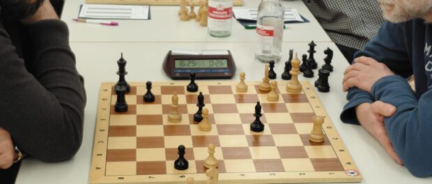 Beim Zwischenstand von 1,5-1,5 war klar, dass ein Remis von Egor Shamarin am Spitzenbrett gegen Dominik Steiner zum Weiterkommen reichen würde. Allerdings war das alles andere als sicher. Nachdem Egor erst einen Bauern und dann noch eine Qualität für aktives Spiel geopfert hatte, fand sein Gegenüber zum Glück nicht die optimale Fortsetzung. So bekam Egor einen starken Freibauern, den sein Gegner nur dadurch aufhalten konnte, indem er seine Qualität zurück opferte. Danach entstand ein Turmendspiel mit jeweils zwei Bauern, das keiner der beiden gewinnen konnte. Damit steht am Ende ein 2-2, durch das die Albstädter aufgrund der Berliner Wertung knapp weiterkamen…