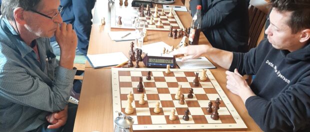 Zum Start gab es 2 eher unspektakuläre Remisen durch Christian Jendel und Thomas Schönegg. Danach musste aber Marc Rukwid die Waffen strecken. Marc bekam eine Vorbereitung aufs Brett, die ihm einen Vorteil verschaffte. Allerdings opferte seine Gegnerin fleißig Bauern, so dass die Stellung immer scharf blieb. Da wir alle nur Menschen sind, kann eine Unachtsamkeit schon entscheidend sein. Marc übersah einen starken Zwischenzug seiner Kontrahentin, der seine Stellung zusammenbrechen ließ.